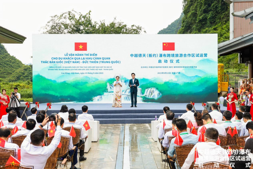 On the morning of September 15, the China-Vietnam Detian (B?n Gi?c) Waterfalls Cross-Border Tourism Cooperation Zone commenced its trial operation with an inaugural ceremony held at the border checkpoint of the cooperation zone.