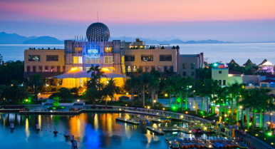 The Ocean Spring Resort Zhuhai, located on the west coast of Zhuhai and covering an area of 5.1 square kilometers, is a cultural tourism and vacation complex integrating ocean hot springs, resort, theme park, fun commercial space, first-line coast, and tourism real estate. Building around the rare seaside hot spring, the resort possesses a variety of types of premium accommodation products and an exciting new playground popular in the Greater Bay Area. It can meet demands of different groups, such as parent-child travel, health and leisure travel, business meetings, study tourism, and team building with abundant facilities such as Fisherman Wharf, Medical Examination Center, Sports Club, Outward Bound Training Camp, Caribbean Water Park, Entertainment Center, Ocean Spring Circuit, and Culinary Library.