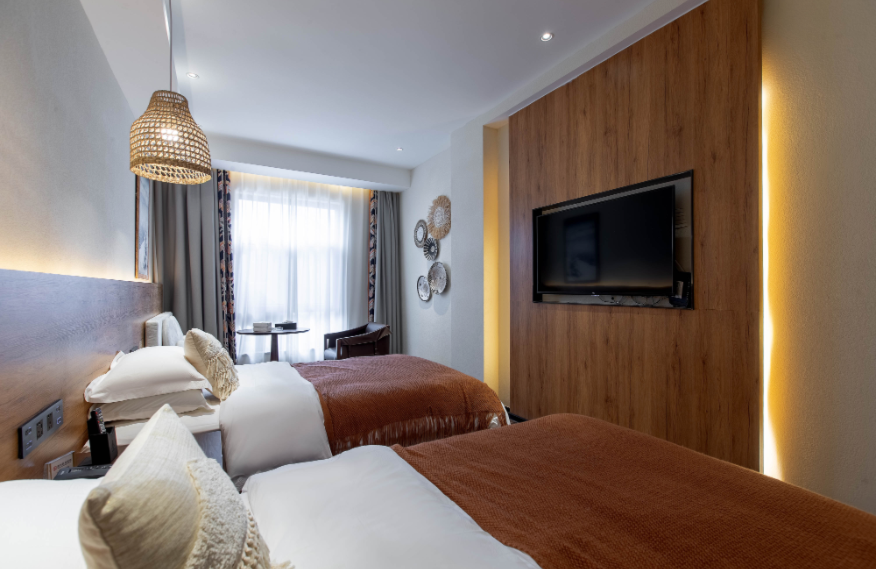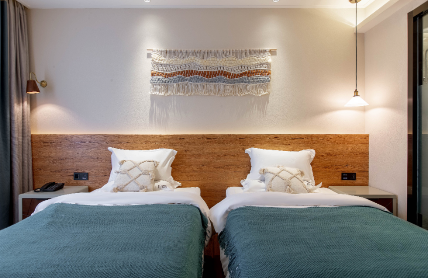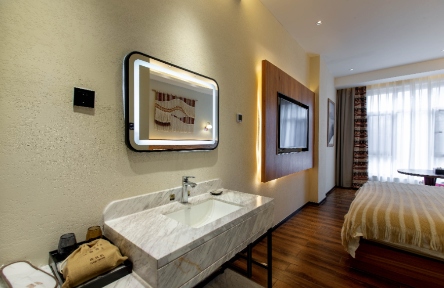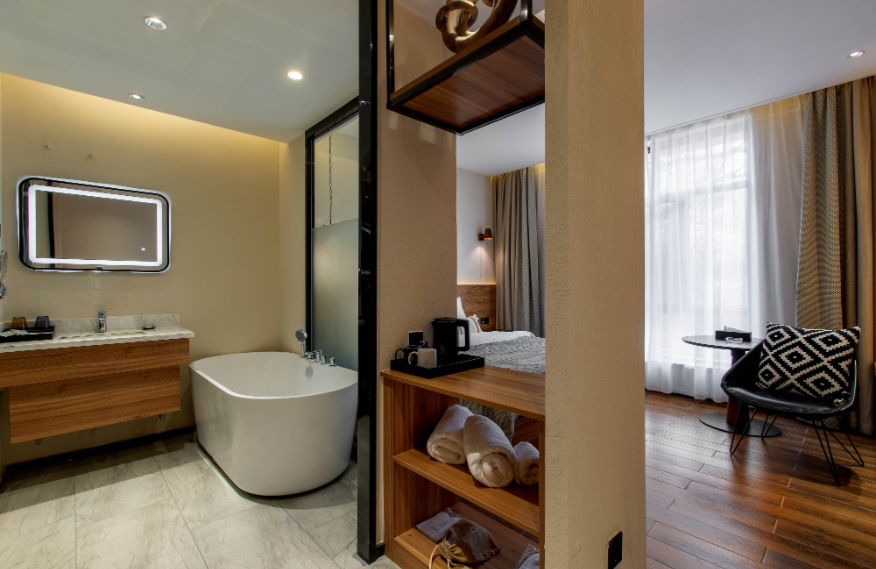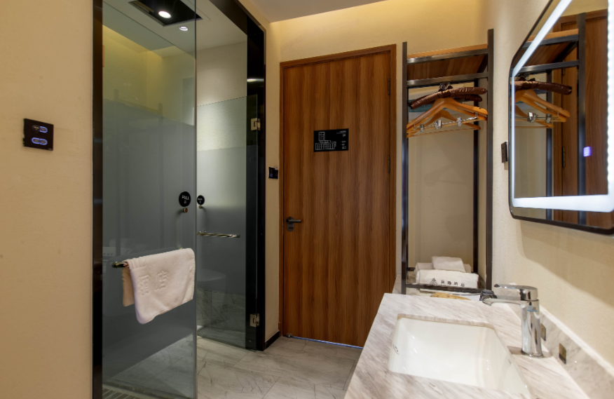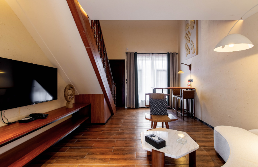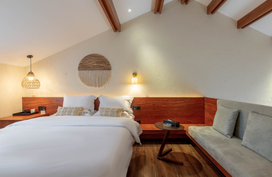 Linyin (it means “hidden in the forest” in Chinese) hotel is located in the forest, covering an area of 80mu (around 53,333 square meters). It is built with wood, stones, and glass, attempting to build a sightseeing place in the natural landscape. There are 55 guest rooms in the hotel (first phase), including 32 standard rooms, 10 queen-size rooms, 2 family suites, and 11 courtyard suites, supported by an restaurant covering 300m2. The guest rooms feature large space with scenic view, equipped with high-grade exquisite furniture and sanitary wares in compliance with quasi-five-star standards of ecological garden hotel. The decoration emphasizes the uniform and individualized style for comfort, warmth and practicality.