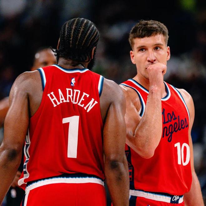 最終常規(guī)賽結(jié)束,博格丹在快船交出的表現(xiàn)是:出戰(zhàn)30場(chǎng)比賽,場(chǎng)均11.4分3.1籃板3.2助攻,三項(xiàng)命中率47.4%/42.7%/87.5%,真實(shí)命中率60.8%,與老鷹期間判若兩人。