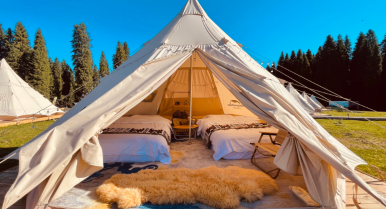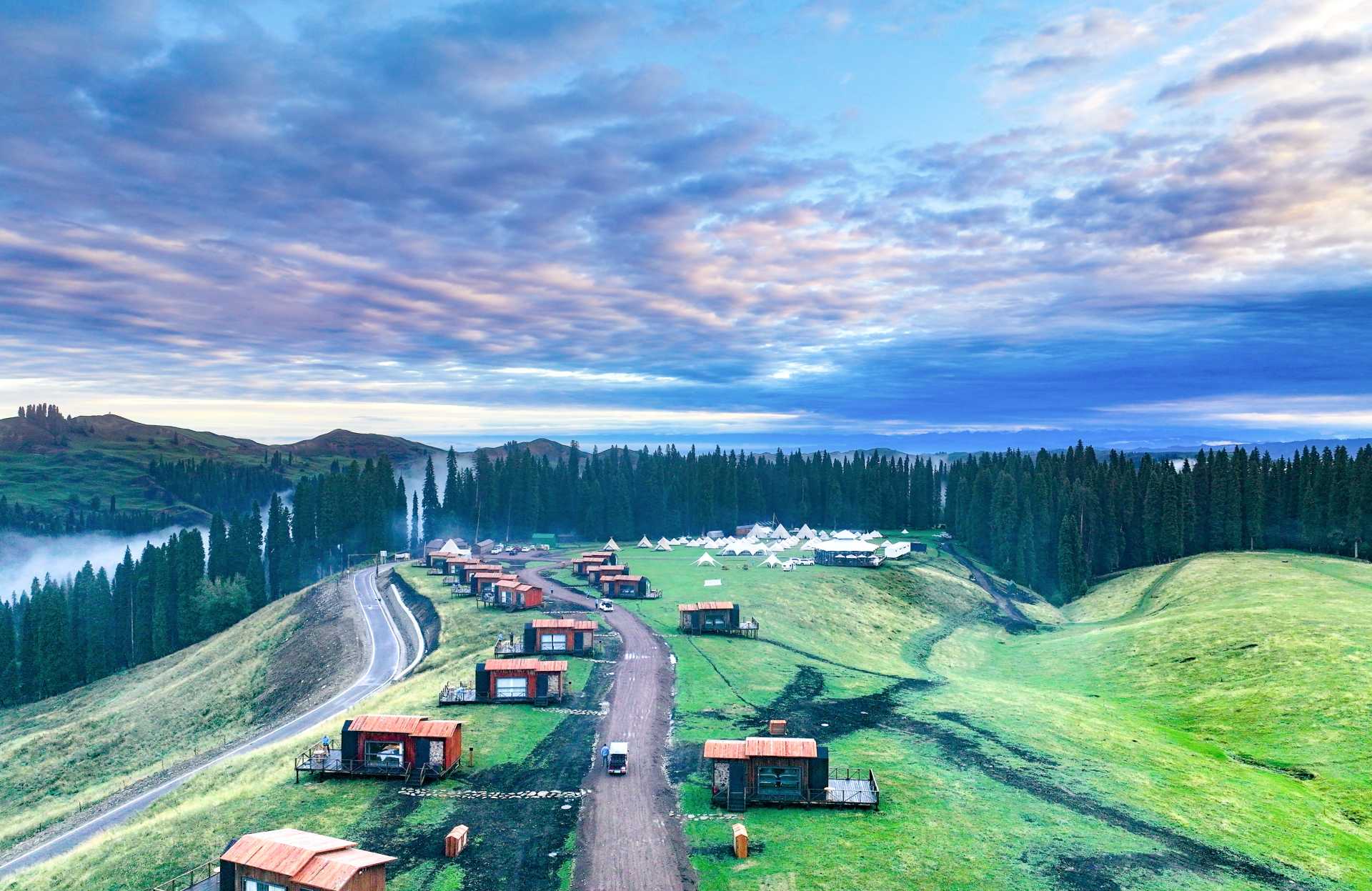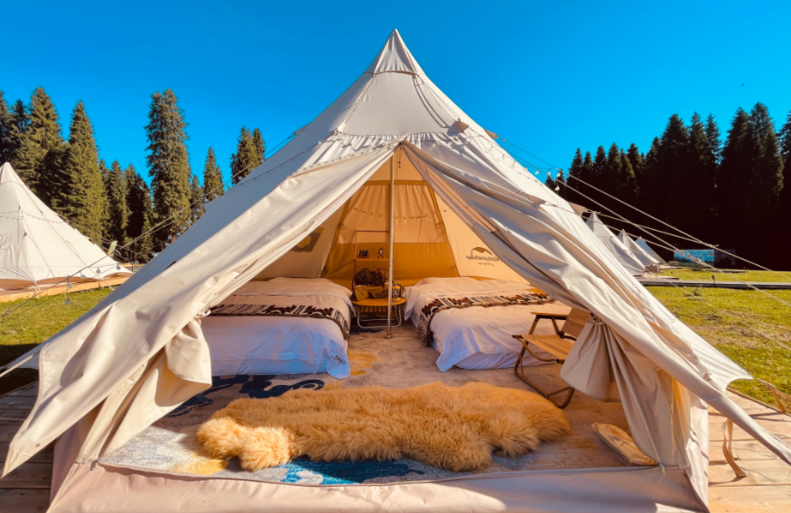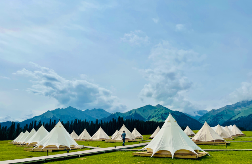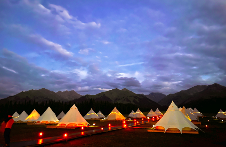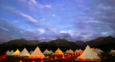 庫爾墩營地位于小庫爾墩平臺,距喀峰大本營 5 公里,占地 120 畝,一期項目擁有 33 間帳篷和 21 間頂奢裝配式度假屋,配備餐廳、移動咖啡廳、移動酒吧等公共區(qū)域,為來客打造出一處私享空間。庫爾墩營地是中旅柏睿重點打造的「 全季運營野奢營地 」,是中旅天山走廊的核心節(jié)點,也是中旅在新疆集景區(qū)運營和新型度假產(chǎn)品為一體的標桿項目。