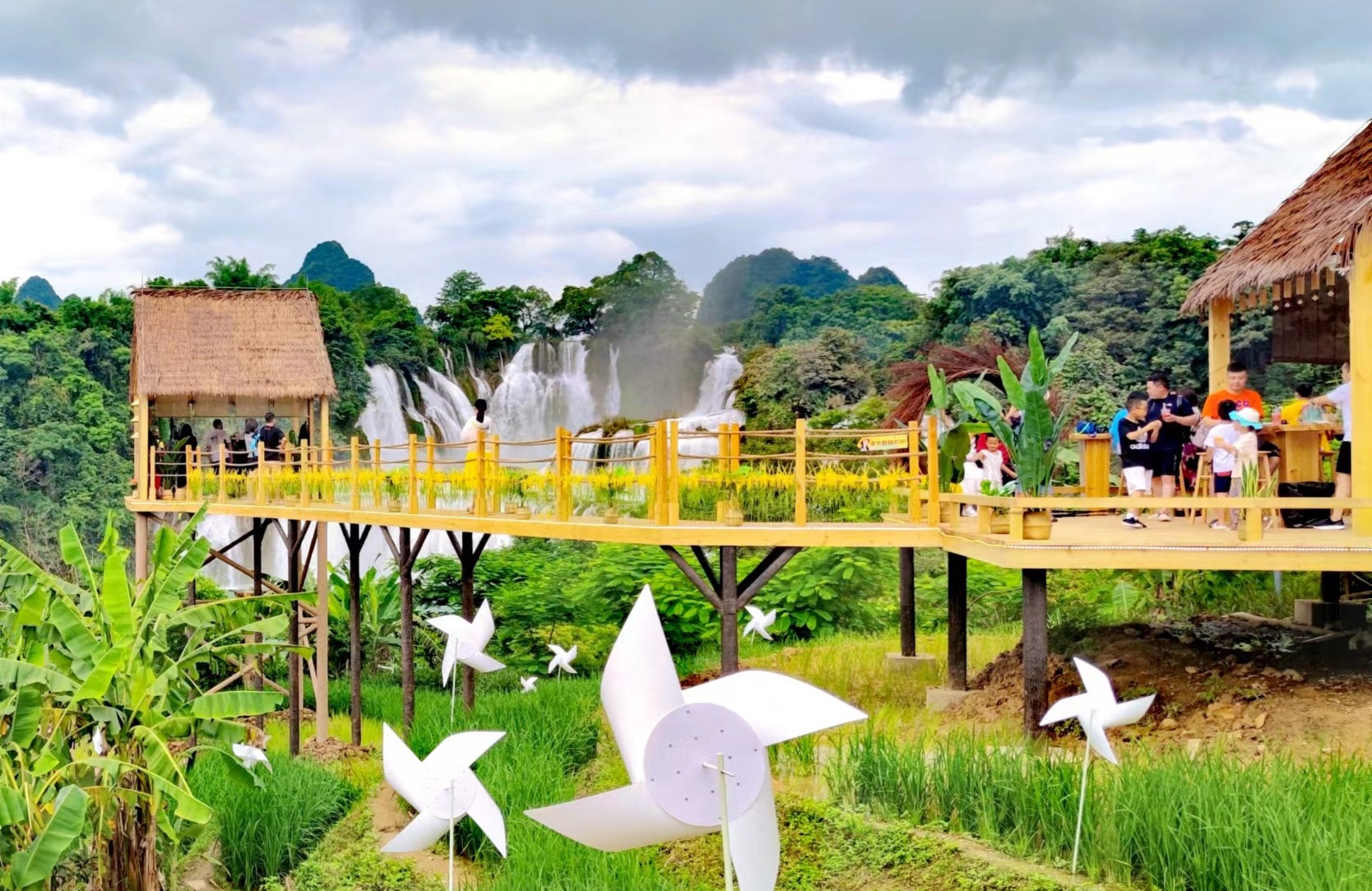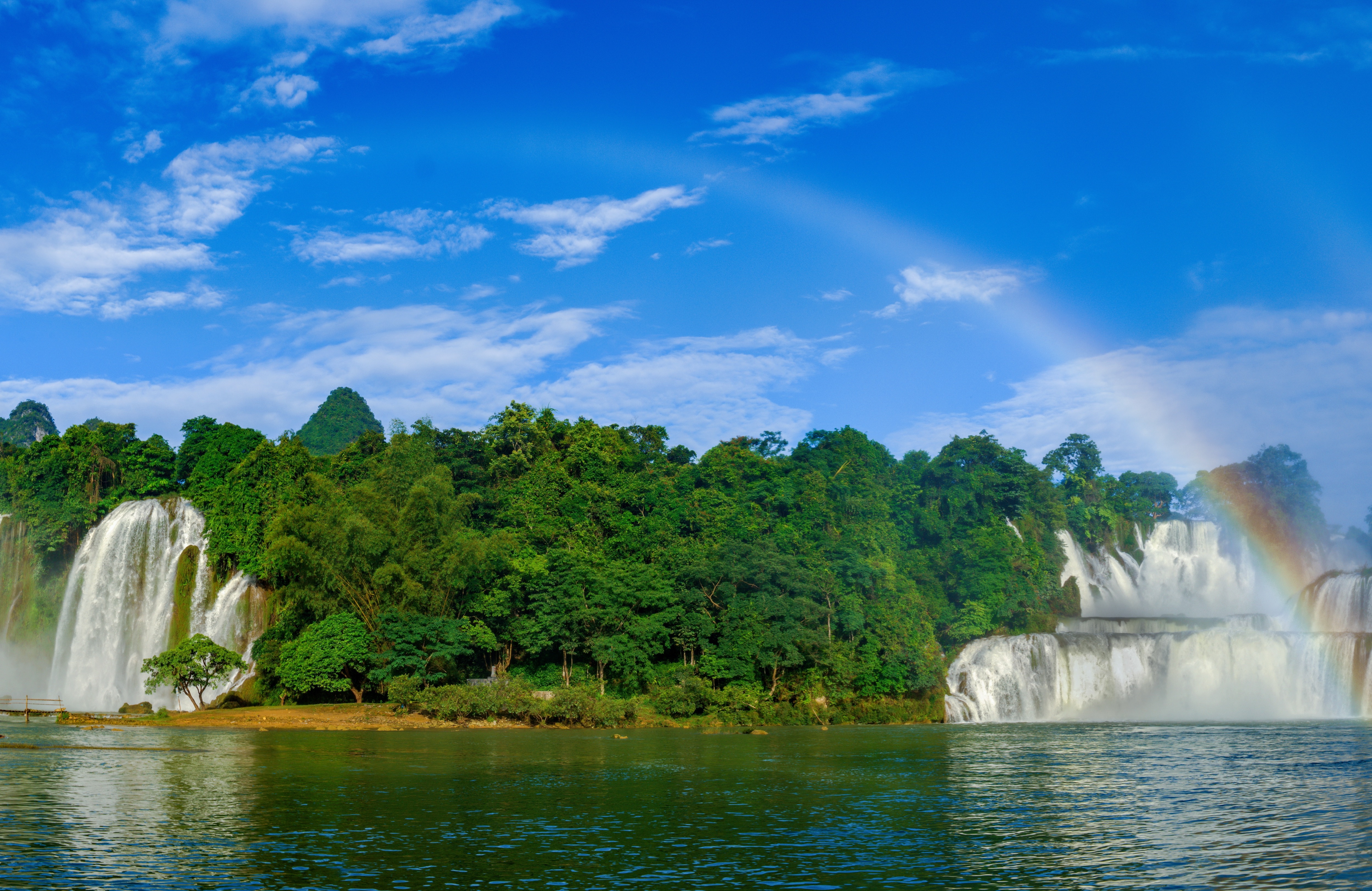 德天跨國(guó)瀑布景區(qū)位于廣西壯族自治區(qū)崇左市大新縣碩龍鎮(zhèn)德天村,地處中越邊境的百里山水畫廊之上。瀑布分三級(jí)跌落,橫跨中、越兩國(guó),與越南板約瀑布相鄰,寬200多米,縱深60多米,落差高達(dá)70余米,層層跌落,水勢(shì)激蕩,氣勢(shì)磅礴,是亞洲第一大跨國(guó)瀑布。作為廣西邊關(guān)旅游的名片,德天跨國(guó)瀑布景區(qū)推出了奇妙·夜德天、中越跨境街、登高望“越”、飛天魔毯、懸崖玻璃棧道、高空滑道、觀瀑稻田咖啡時(shí)光集等特色項(xiàng)目,帶您水陸空360°解鎖邊關(guān)旅游新體驗(yàn)。